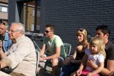 Eigenlijk kon ons optreden dienen als aperitiefconcert! We werden voor de jury verwacht rond 11h30. De opbouw van het slagwerk op het podium van de Herbakker – achter gesloten gordijnen – verliep vlekkeloos, mede dankzij de niet aflatende bereidheid van onze vroegere voorzitter Michel Fordeyn om met een camionette het transport te verzorgen. Toen de enorme gordijnen zich openden bleek de concertzaal behoorlijk vol te zitten. Sympathisanten uit Bassevelde zelf, familieleden van muzikanten, en enkele bekende en minder bekende Eeklonaren die het inderdaad een goed idee vonden om voorafgaand aan de zondagse middagtafel nog algauw een aperitiefconcertje mee te pikken. Na het uitvoeren van de eigenlijke concourswerken was ons immers gevraagd om tijdens de deliberatie van de jury nog enkele bijkomende werken te verzorgen. Dirigent Hessel koos voor Backdraft en The Mask of Zorro