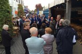 We vertrokken met de zon in onze rug naar de verdere gelegen leden herbergiers.('T spoor en cafe de handboog). Alwaar we ook een deuntje ten berde brachten .Op dit punt komt de groep meestal volledig op gang en dat was ook nu niet anders.